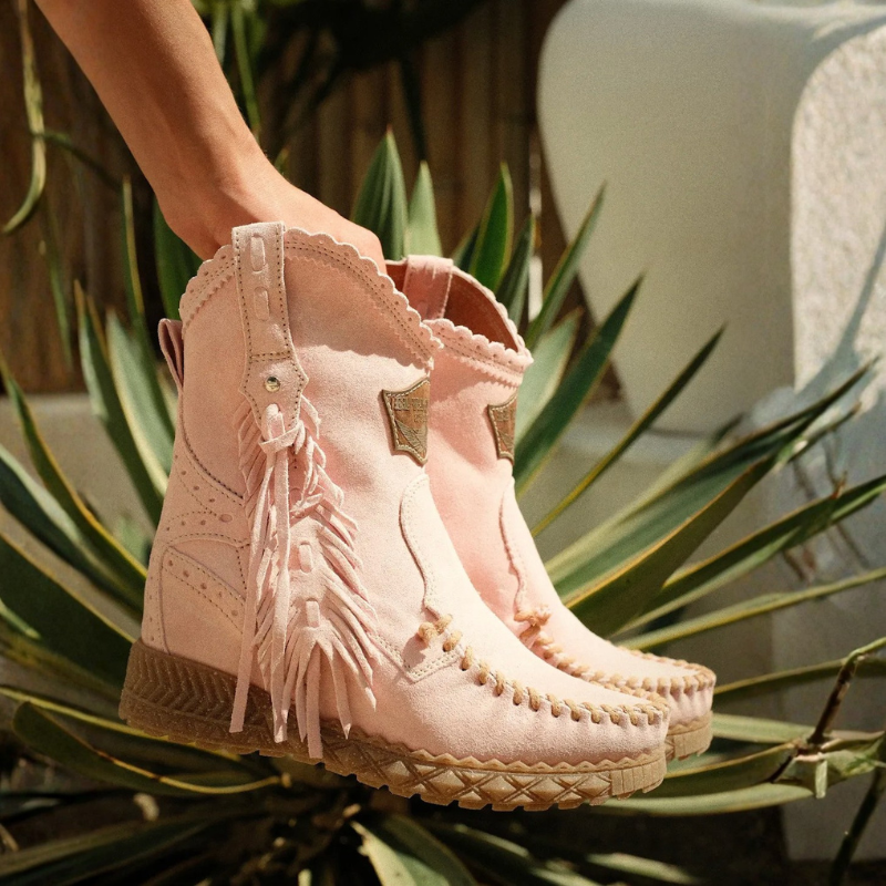 El Vaquero maakt karaktervolle dameslaarzen die vakmanschap en vrijheid uitstralen. Denk aan soepel leer en suède, artistieke afwerkingen en een doorleefde, boho-look die moeiteloos combineert met jurken, denim en knitwear. Sinds 1975 bouwt het merk aan een traditie van handgemaakte leren boots, met oog voor detail en draagcomfort.