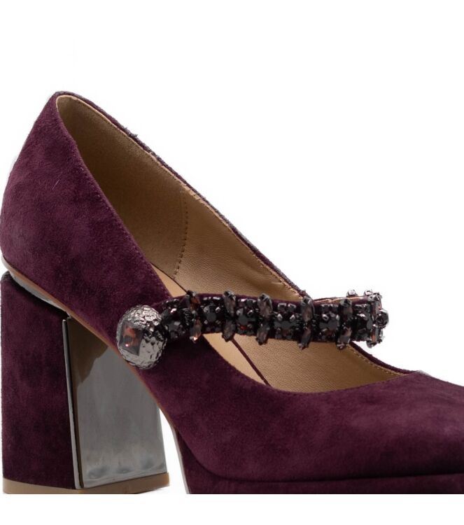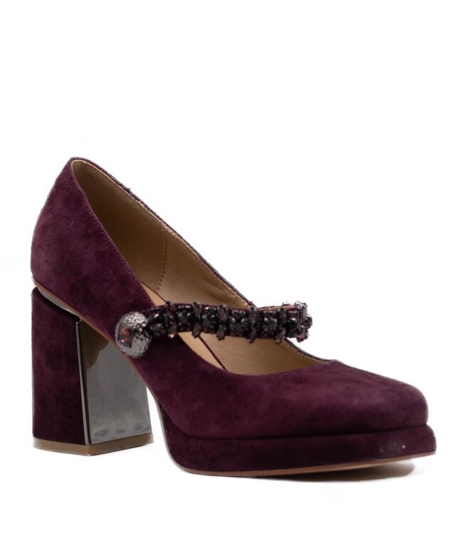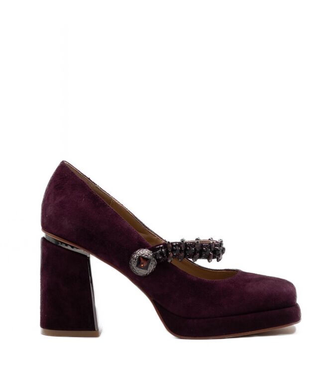 Alma en Pena I250356 dames pumps plateau paars suede. De binnenzool van deze pumps is niet uitneembaar. De schoen is gemaakt van suede leer en de binnenvoering is ook van leer