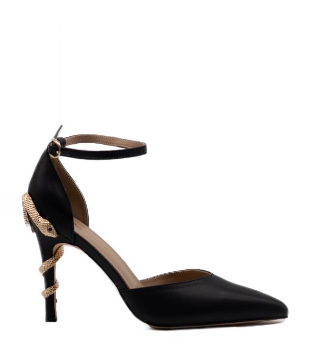 Alma en Pena I250440 dames pumps zwart goud. De binnenzool van deze pumps is niet uitneembaar. De schoen is gemaakt van leer en de binnenvoering is ook van leer.