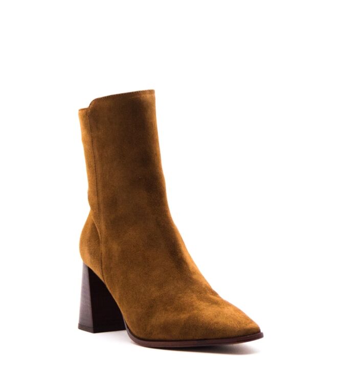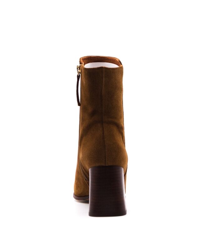 Angel Alarcon Tridas 24566-492A dames enkellaarsjes cognac. De binnenzool van deze enkellaarsjes met hak is niet uitneembaar. De schoen is gemaakt van leer en de binnenvoering is van leer.