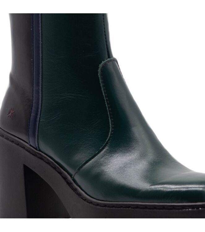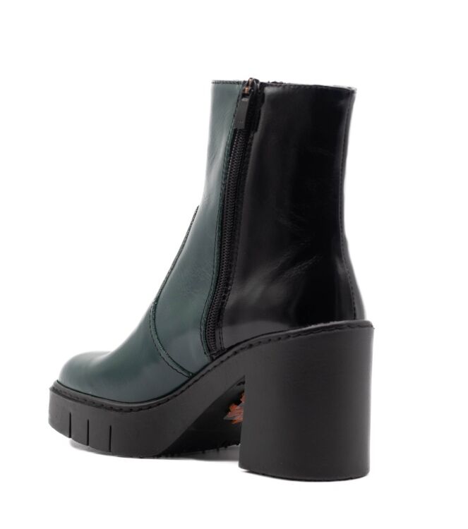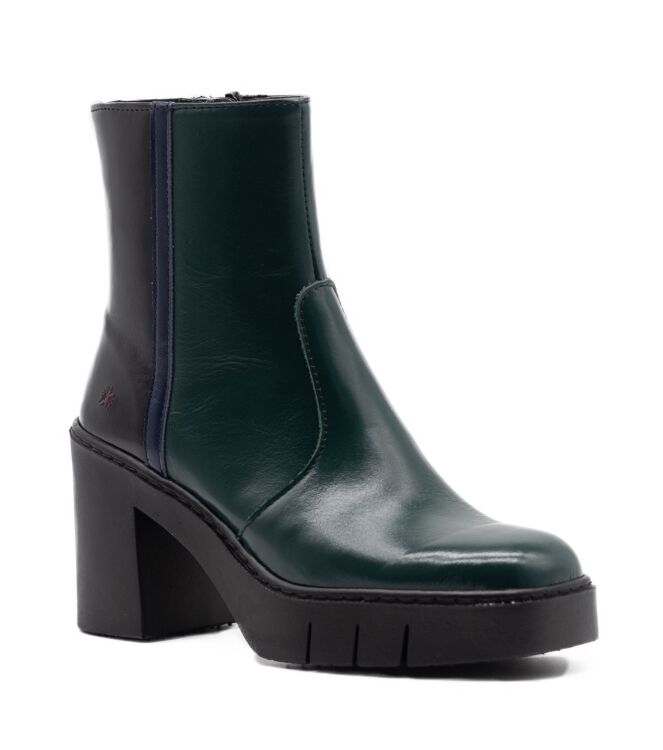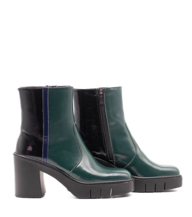 Art 1974 Berna dames enkellaarsje groen. De binnenzool van deze enkellaarzen is niet uitneembaar. De schoen is gemaakt van leer en de binnenvoering is ook van leer in combinatie met stof.