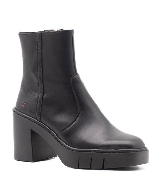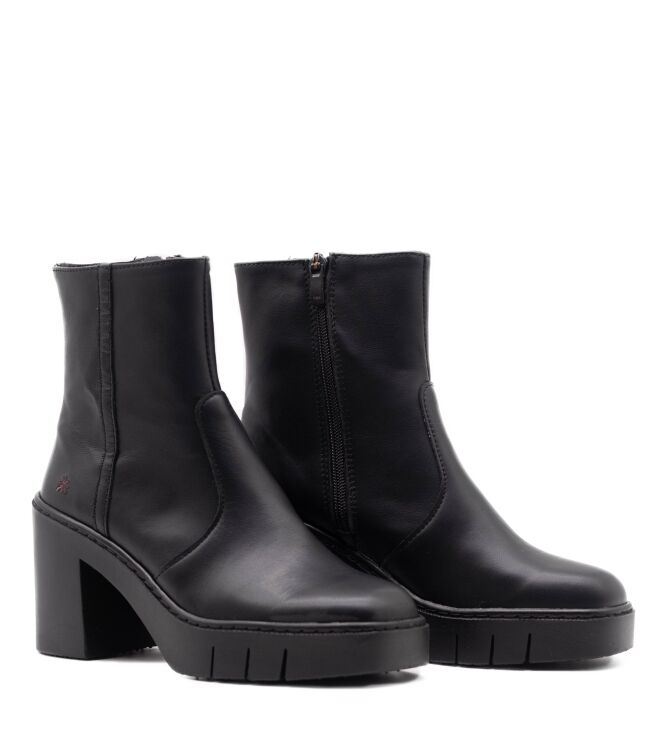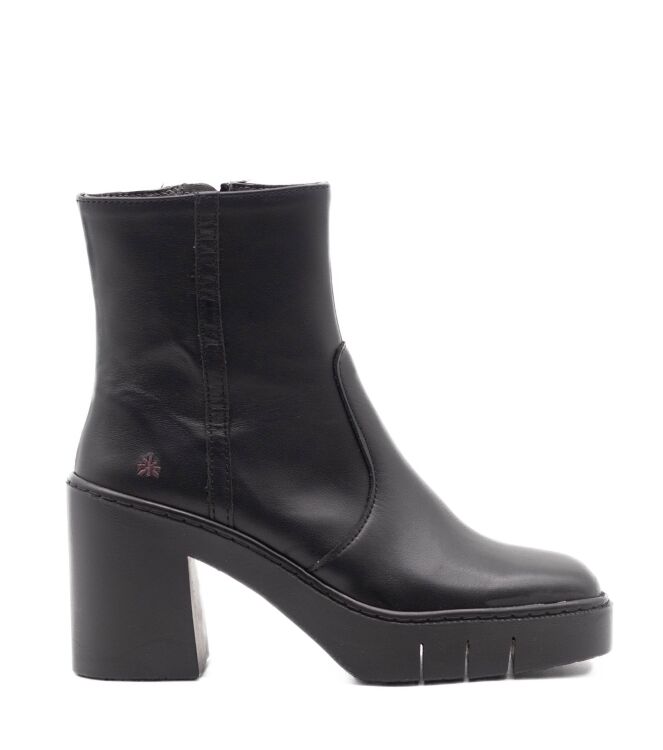 Art 1974 Berna dames enkellaarsje zwart. De binnenzool van deze enkellaarzen is niet uitneembaar. De schoen is gemaakt van leer en de binnenvoering is ook van leer in combinatie met stof.