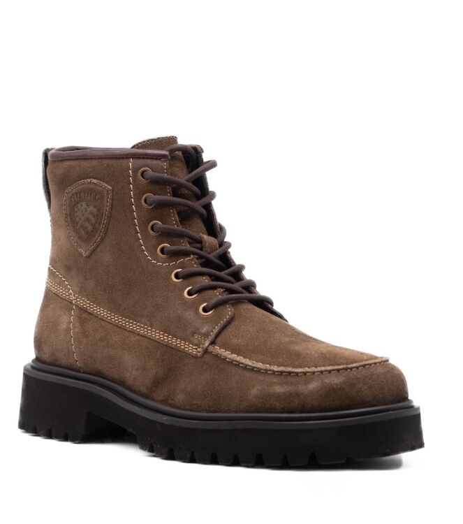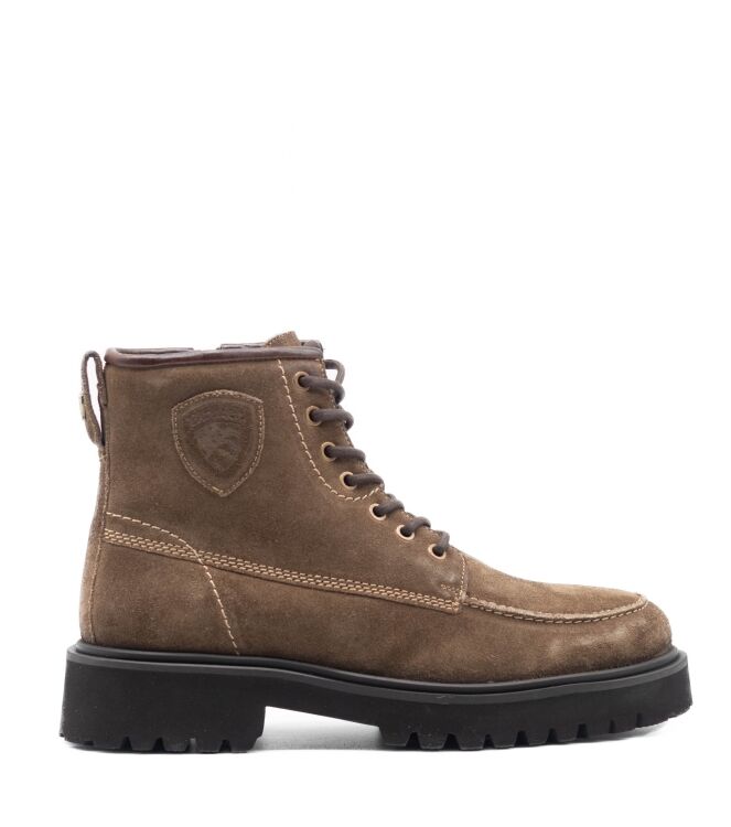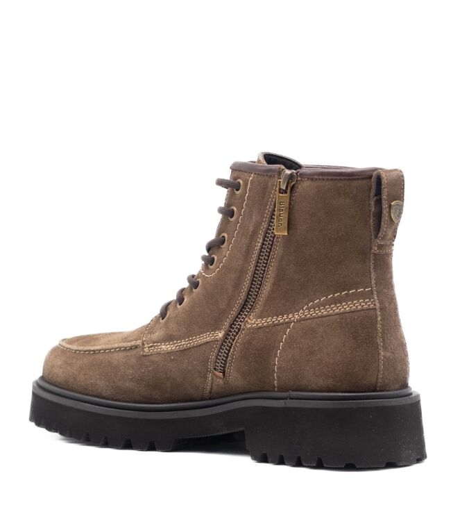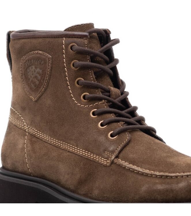 Blauer F5BUXTON05/SUE heren veterschoenen bruin suede. De binnenzool van deze halfhoge veterboots is niet uitneembaar. De veterschoen is gemaakt van leer en de binnenvoering is ook van leer in combinatie met stof De schoen heeft een rits.