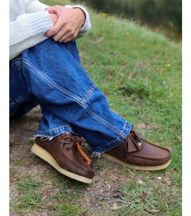 Clarks Originals Wallabee 26156605 heren veterschoenen naturel wax. De binnenzool van deze nette schoenen is niet uitneembaar. De schoen is gemaakt van leer en de binnenvoerig is ook van leer. De Wallabee Boots zijn voorzien van de kenmerkende natuurlijke rubberen crepezool voor moeiteloos draagcomfort en stijl.