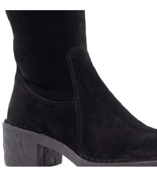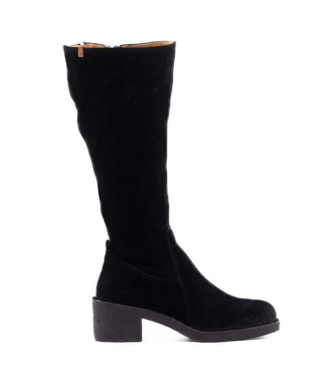 El Naturalista Ticino 5663 dames laarzen op hak zwart. De binnenzool van deze laarzen is niet uitneembaar. De schoen is gemaakt van suede leer en de binnenvoering is ook van leer in combinatie met stof.