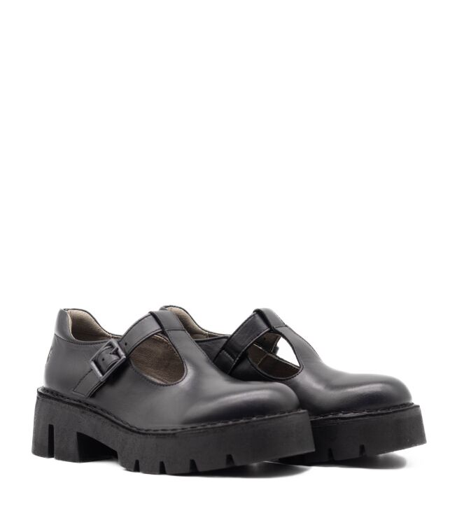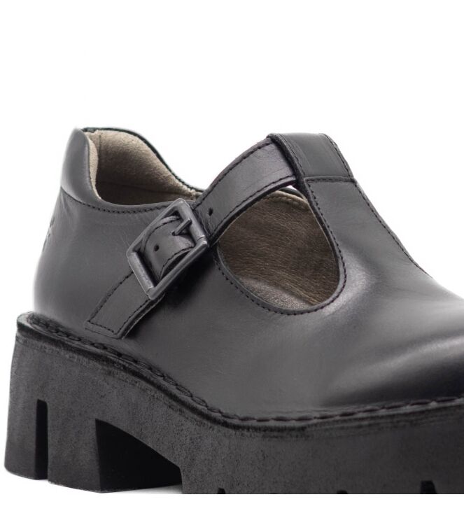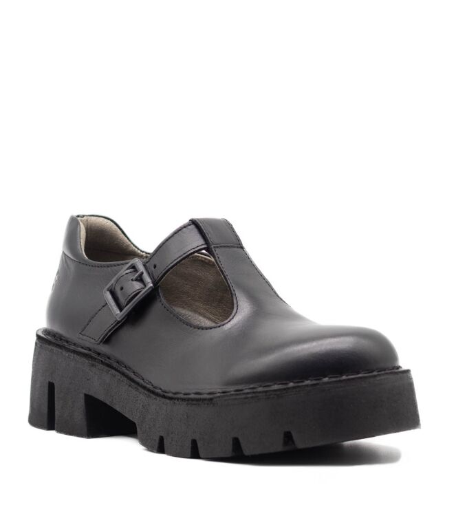Fly London Baiz 162 Fly dames instappers zwart. De binnenzool van deze instappers is uitneembaar. De instapper is gemaakt van leer en de binnenvoering is van stof.