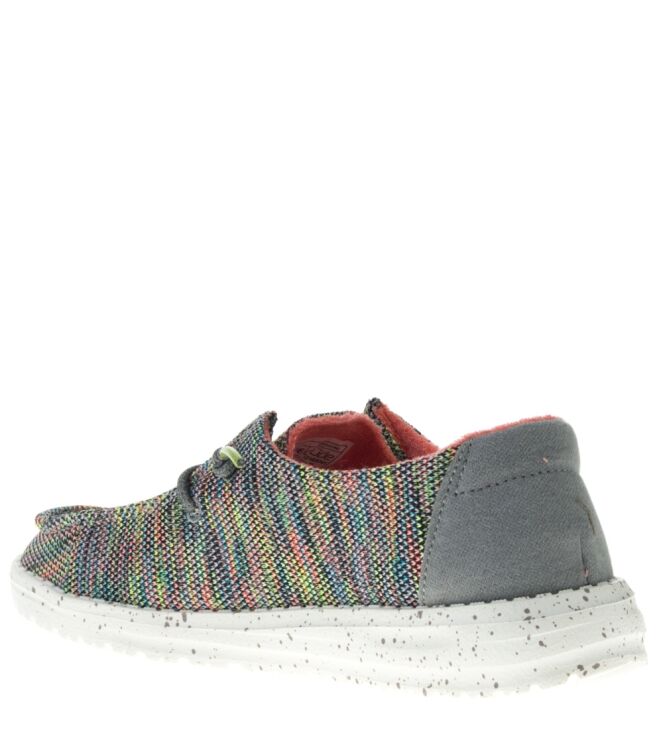 HeyDude Wendy Sox dames veterschoenen multi roze. De binnenzool van deze lage veterschoenen is uitneembaar. De schoen is gemaakt van stof en de binnenvoering is ook van stof