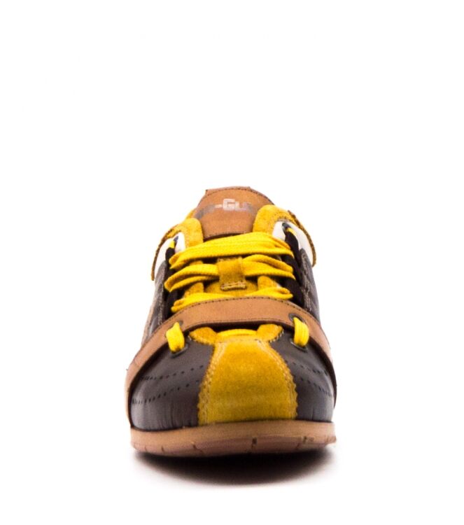 Kamo Gutsu Tifa-002 dames sneakers bruin geel. De binnenzool van deze sneakers is uitneembaar. De sneaker is gemaakt van leer en de binnenvoering is ook van leer