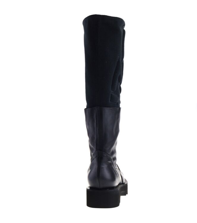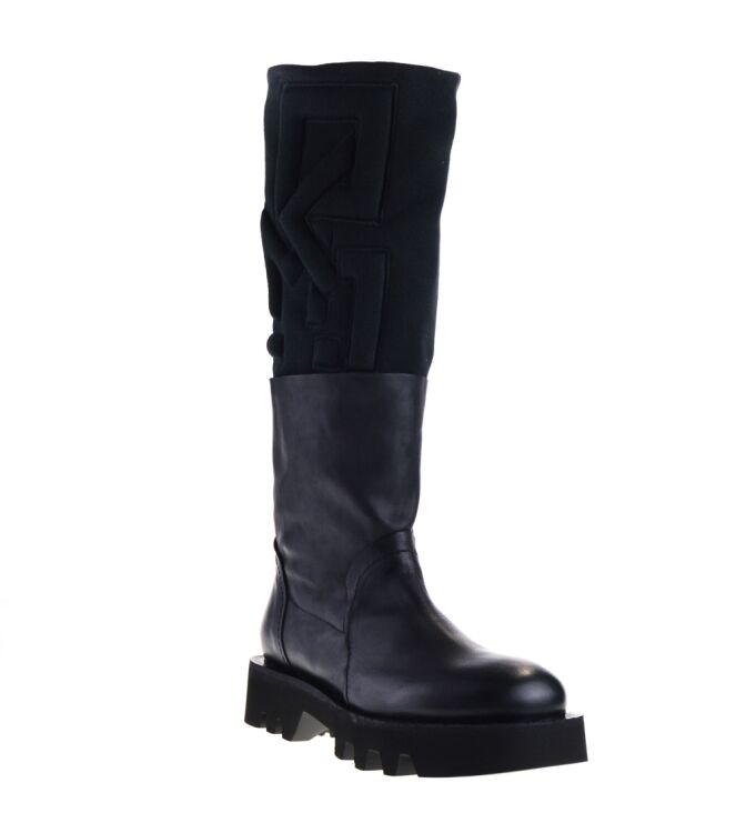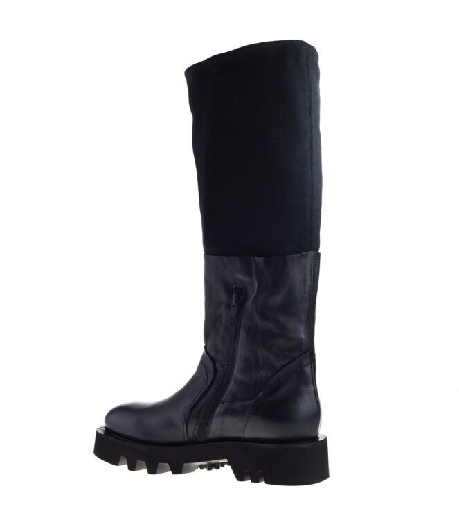 Malloni M19I96083R dames laarzen zwart. De binnenzool van deze laars is niet uitneembaar. De laars is gemaakt van leer in combinatie met stof en de binnenvoering is ook van leer in combinatie met stof.