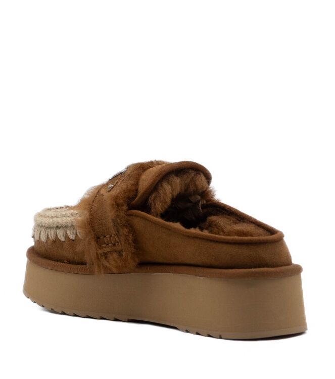 Mou MU.FW681006A dames muil gevoerd. De binnenzool van deze sandaal is niet uitneembaar. De schoen is gemaakt van suede leer en de binnenvoering is ook van leer in combinatie met schapenvacht. Mou schoenen worden met de hand vervaardigd van hoogwaardige natuurlijke vezels, zorgvuldig geslecteerd op schoonheid, zachtheid, warmte en duurzaamheid.