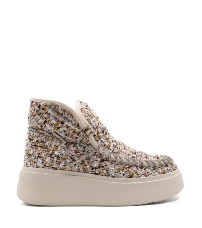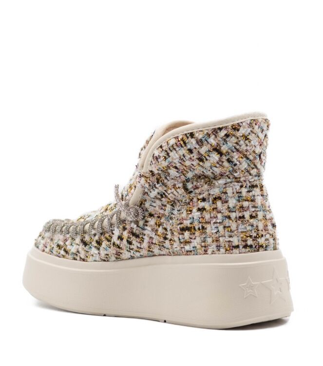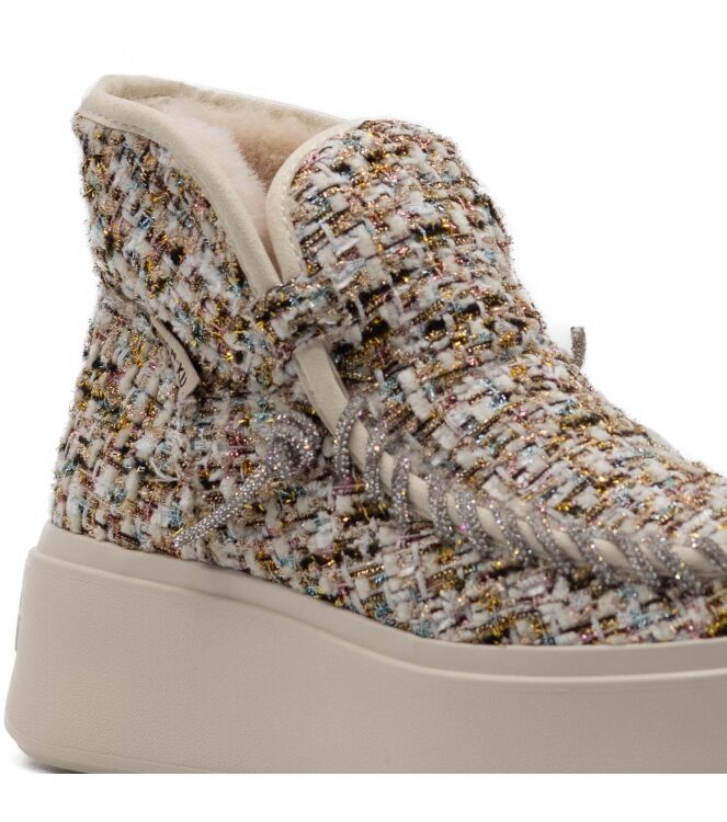 NAN-KU Couture DFH-41 dames enkelboots gevoerd multi. De binnenzool van deze enkellaarzen is niet uitneembaar. De schoen is gemaakt van stof en de binnenvoering is van leer in combinatie met schapenwol.
