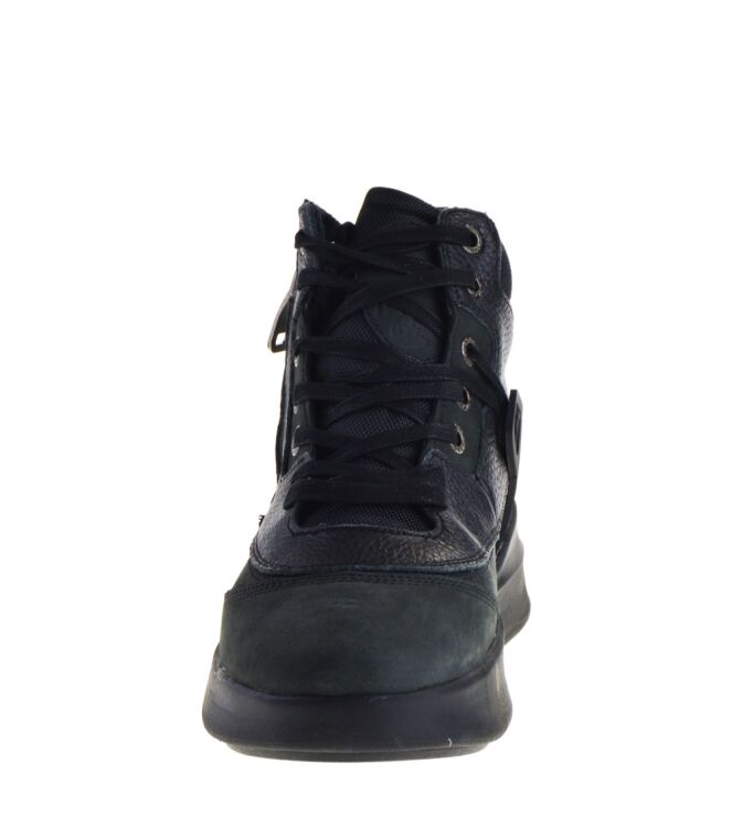 Pajar Exoli Fu So heren veterschoenen zwart. De binnenzool van deze halfhoge nette herenschoen in zwart is uitneembaar. De schoen is gemaakt van leer en stof de binnenvoering is ook van stof.