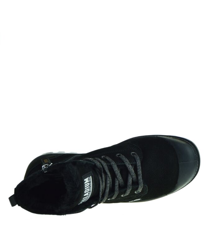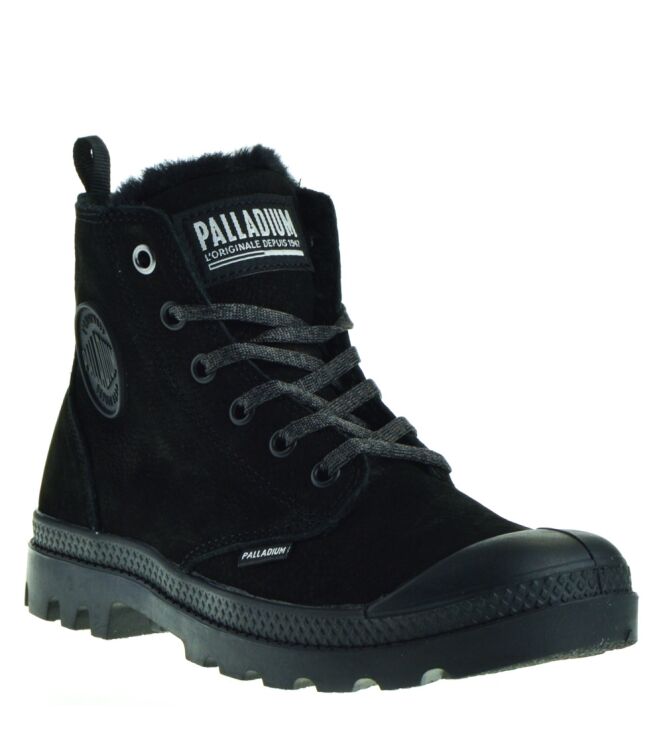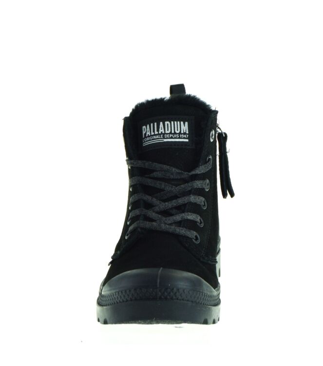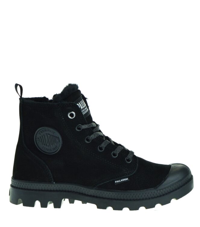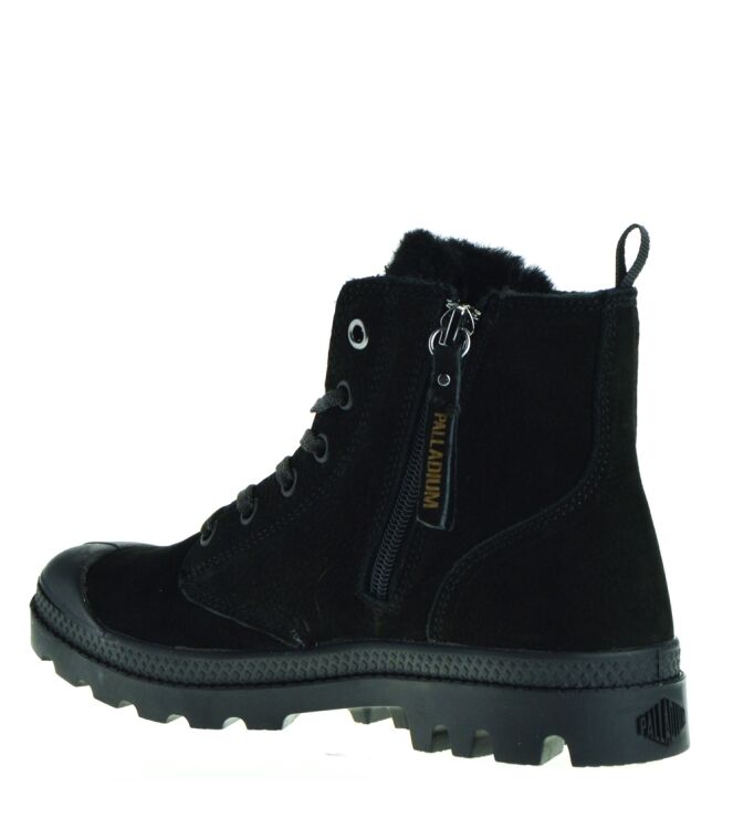 Palladium Pampa Hi Zip 95982 dames boots gevoerd zwart suede. De binnenzool van deze hoge veterbooty in zwart is uitneembaar. De schoen is gemaakt van stof en de binnenvoering is gemaakt van immitatie Wol.