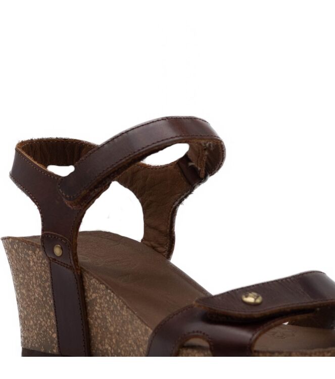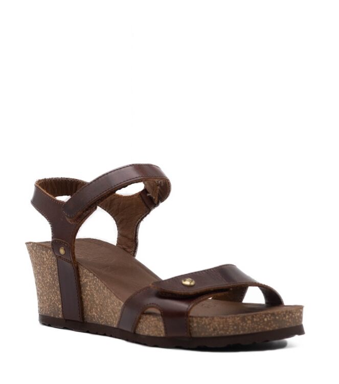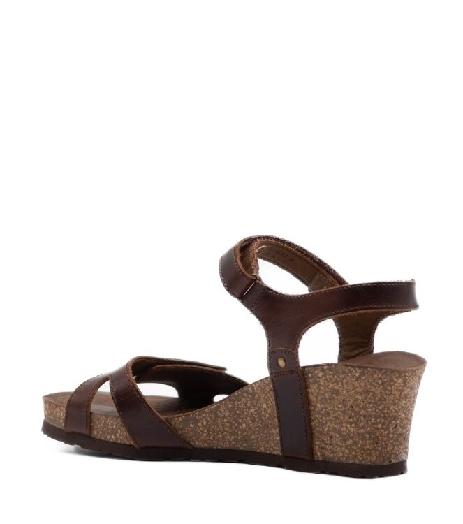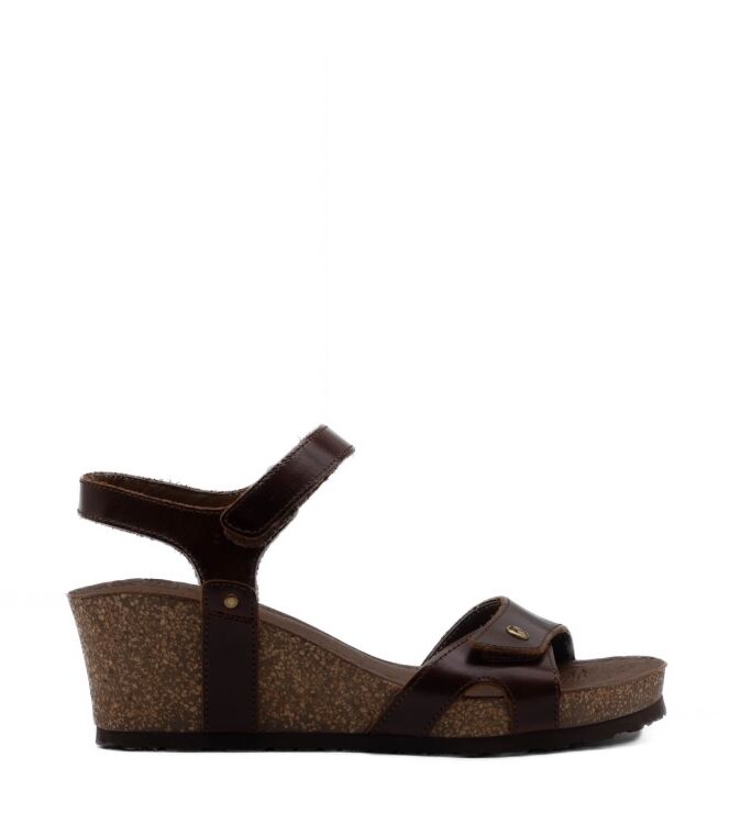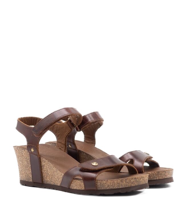 Panama Jack Julia Clay B1 dames sandalen op sleehak bruin. De sandalen sleehak is gemaakt van leer en de binnenvoering is ook van leer.