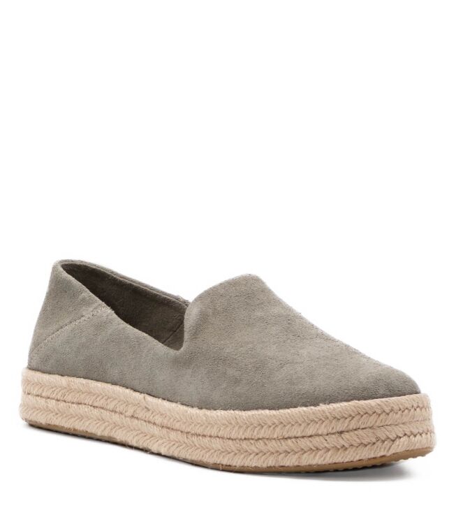 Toms 10022469 Carolina dames slip-ons groen suede. De slip-ons is gemaakt van leer en de binnenvoering is van stof.